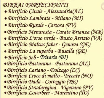 Si svolgerà a Vigevano (PV) il prossimo 14 e 15 Maggio 2011 un festival che è stato pensato e curato molto bene e che dovrebbe dare ottimi frutti per la bravura, serietà e puntualità di chi organizza cioè Enzo Pinelli e suo entourage del beer-shop Il Magazzino della Birra di Vigevano. Per info info@ilmagazzinodellabirra.it e 3405840803 Sotto potete leggere i Birrai partecipanti e il Programma della manifestazione curata nei minimi dettagli dal beer taster Lorenzo Dabove in arte Kuaska